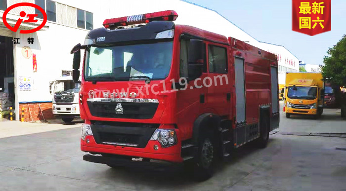 JDF5190GXFPM80/Z6型泡沫消防車為國六消防車車型,采用重汽豪沃ZZ5207TXFV471GF5底盤改裝而成。整車由消防員乘員室和車身兩大部分組成,