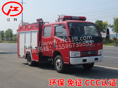 該車的另外一種國五消防車車型為雙排的小東風2600軸距的水罐消防車車型,這樣設計是方便救火人員乘坐,有限的長度加大了整車的使用率,上戶噸位0.6噸,可做到1.2-1.5噸。兩款車型都降低了對使用者駕照的要求,方便了企業和消防部隊對消防車使用的一些硬性條件。