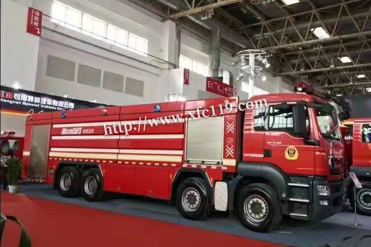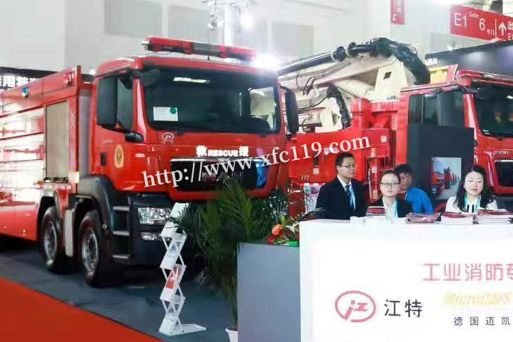 這次我公司湖北江南專用特種汽車有限公司參展的產品是由我公司單獨研發的高端城市主戰消防車,公告名稱壓縮空氣泡沫消防車。