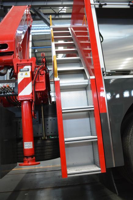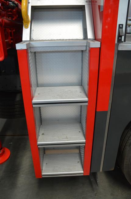 梯臺、扶手及護(hù)欄:為便于取用/收納應(yīng)急救援裝備器材,符合安全和人機(jī)工程要求,本車根據(jù)實際使用需要,設(shè)計有各種梯臺、扶手、安全護(hù)欄等輔助設(shè)施。