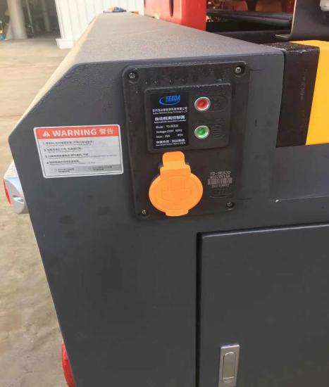 5.10自動分離式充電充氣裝置:自動充電充氣裝置采用用蘇州怡達(dá)新能源科技有限公司YD-SES30A型自動脫離充電充氣系統(tǒng),由自動繞線器提供的220V電源,通過分離式彈性插頭給車輛供電供氣,當(dāng)電瓶充滿、儲氣罐壓力達(dá)到設(shè)定值后系統(tǒng)自動停止工作,當(dāng)需要出動車輛時,駕駛員只需打開啟動鑰匙,車輛啟動時分離式彈性插頭自動與車輛充電充氣接口分離,當(dāng)出現(xiàn)異常情況不能自動分離時,會發(fā)出聲光報警提醒駕駛員查看故障或手動分離,達(dá)到快速出動車輛的目的。