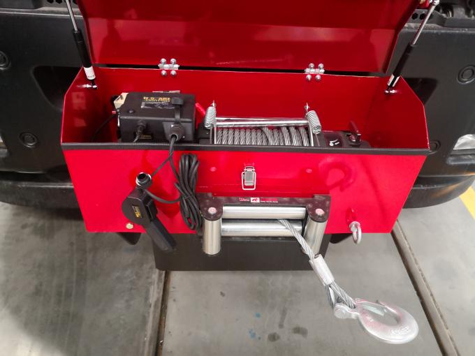 Ø 安裝位置:絞盤采用國外技術(shù)安放于車頭保險桿前部,鋼絲通過合理的導(dǎo)向輪延伸到車前,以保證力強(qiáng)勁,穩(wěn)定可靠。