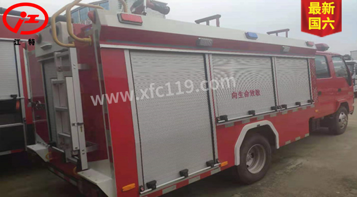 JDF5071GXFPM20/Q6型泡沫消防車為國六消防車車型,采用五十鈴QL1070BUHWY底盤改裝而成。整車由消防員乘員室和車身兩大部分組成,乘員室為原裝雙排,可乘坐2+3人,該車為內(nèi)倉罐結(jié)構(gòu),車身前部為水罐+器材箱,后部為泵房。載液罐體為優(yōu)質(zhì)碳鋼,與底盤采用彈性連接,載水1385kg,泡沫容積637kg,裝備了CB10/30型消防泵,額定流量30L/S,車頂安裝的PL24型車用消防炮。該車輛結(jié)構(gòu)緊湊,配置完備,機動性強,能夠及時應(yīng)對企業(yè),社區(qū)或重點消防單位的火情,可以第一時間形成小型戰(zhàn)斗力進行初期火災(zāi)的撲救和人員疏散撤離。可廣泛應(yīng)用于消防救援站,政府專職消防隊,企業(yè)專職消防隊等。