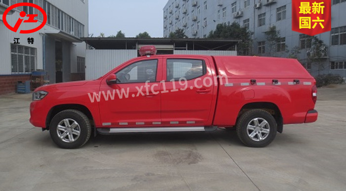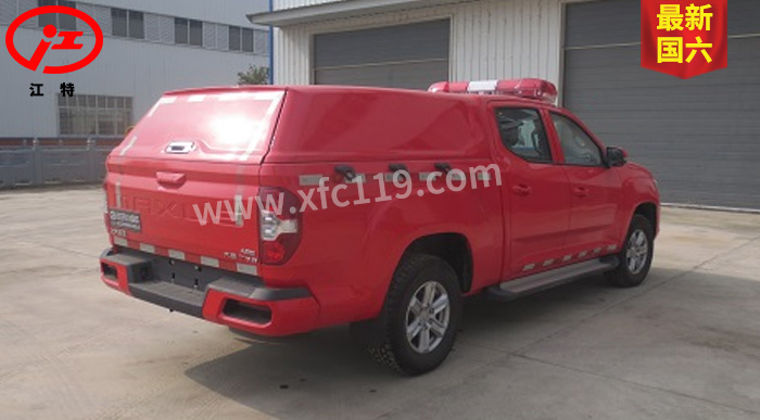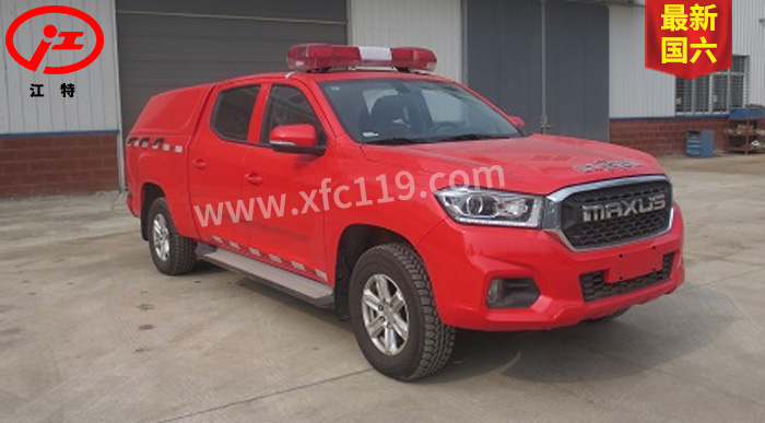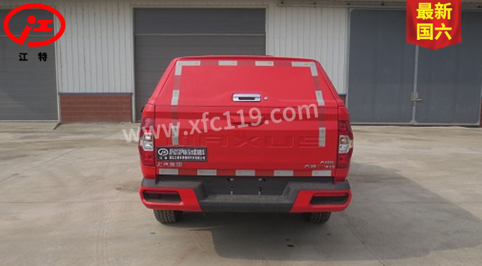 江特牌JDF5030GXFPW0.4/S6水霧消防車(chē)整車(chē)為國(guó)六消防車(chē)車(chē)型,采用上汽大通汽車(chē)有限公司生產(chǎn)的皮卡底盤(pán)SH1032E6DC-P改裝而成,